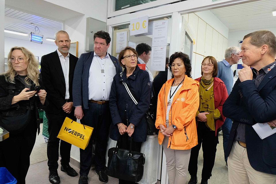 Paul Burger, der stellvertretende Präsident des DRK-Kreisverbands, dankte dem Land für die Unterstützung der Tafeln, denn ohne die Förderung der Logistik „würde es eng werden“. Brandt wies in diesem Zusammenhang auf die Kosten hin, welche die Tafeln zu tragen haben: von den Fahrzeugen und deren Unterhalt, über Energie- und Mietkosten bis hin zu dem Müllgebühren. „Deshalb sind wir auf Unterstützung und Spenden angewiesen“, so Brandt. Die Zahl der Einkäufe im Ulmer Tafelladen, die nach Beginn des Ukraine-Kriegs einen Höchststand von mehr als 350 pro Tag erreicht hatte, habe sich inzwischen auf 150 bis 200 eingependelt. „Wir haben noch nie einen Aufnahmestopp erklärt. Unser Credo ist, niemanden abzuweisen“, betonte Brandt. „Wenn es eng wird, müssen alle etwas zusammenrücken“ – und können beispielsweise nur noch jeden zweiten Tag zum Einkaufen kommen.