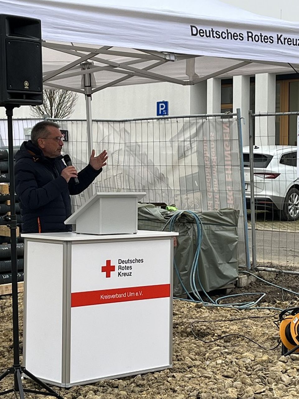 Das Bauvorhaben sei „mehr als ein bauliches Projekt“, bestätigte Ehingens Oberbürgermeister Alexander Baumann. Es sei vielmehr ein „wichtiges Versprechen an die Bevölkerung“, in Notsituationen schnell da zu sein und Hilfe zu leisten sowie ein „Bekenntnis zu einem starken, modernen und verlässlichen Rettungswesen“. Auch er unterstrich den „optimalen Standort“, für dessen Erhalt er dankbar sei. Es seien Jahre ins Land gegangen, in denen man sich bemüht habe, das Grundstück zu bekommen, sagte Baumann. Nun könne am Mühlweg ein „richtiges DRK-Rettungs- und Dienstleistungszentrum“ entstehen.