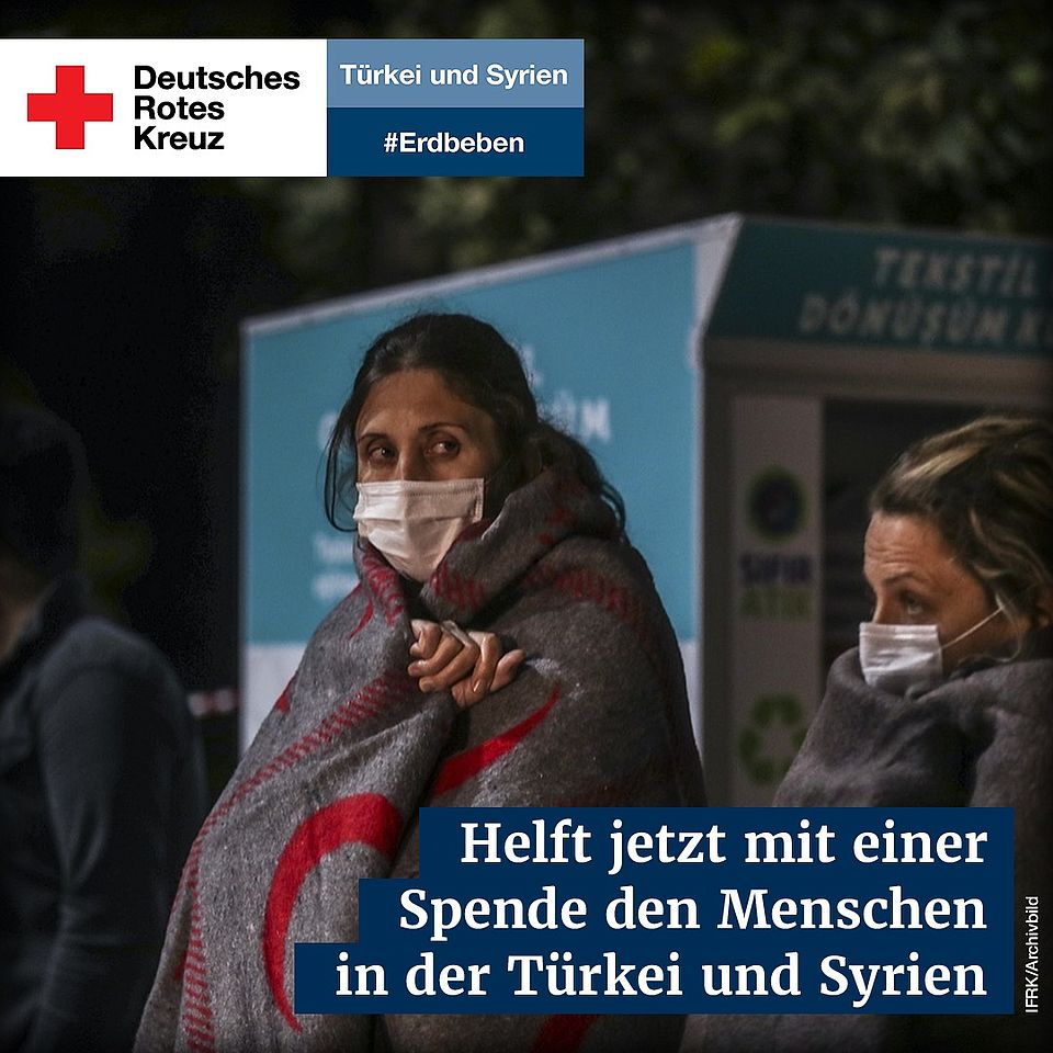 Für Geldspenden für die betroffenen Menschen in der Türkei und Syrien hat das Deutsche Rote Kreuz ein Spendenkonto eingerichtet, auch eine Online-Spende ist möglich.